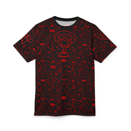 Red on Black "Wings Pattern" Award-Winning Snack Theme Unisex Tee - Fun, Unique Apparel for Food Lovers